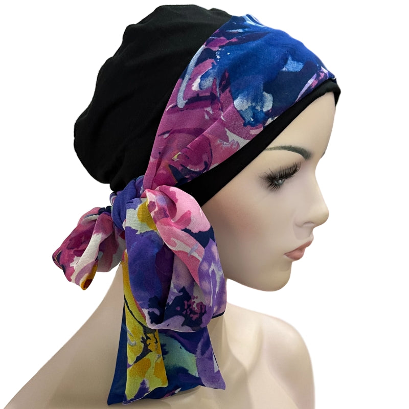 Comfortable Chemo Headwear that can be worn day or night. Wear a Headband or Scarf with any of these Caps to dress them up for a special occasion or to match a favourite outfit.