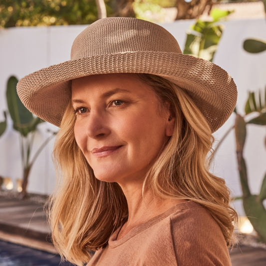 Sun Hats - Polyester Knit - Breton Style - Brown
