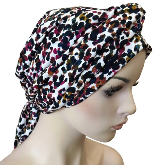 BO-HO Style - Chemo Cap with Attached Long Ties - Prints - SNOW CATRegular price $49.95 AUDRegular priceUnit price / per$49.95 AUDSale price $49.95 AUD