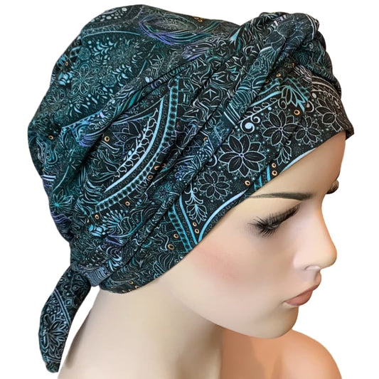 BO-HO STYLE - Chemo Cap with Attached Long Ties - Prints - Teal PaisleyRegular price $49.95 AUDRegular priceUnit price / per$49.95 AUDSale price $49.95 AUD