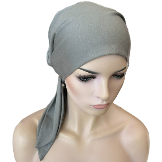 Chemo Cap With Attached Short Ties in Bamboo - Silver Sage