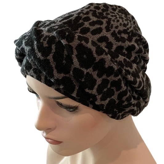 Chemo Headwrap Turban - Black Leopard KnitRegular price $35.00 AUDRegular priceUnit price / per$39.95 AUDSale price $35.00 AUDSale