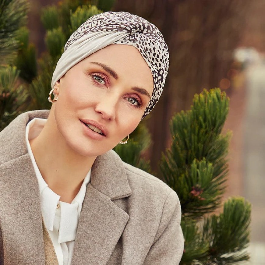 The Shakti turban is one of our most popular models from the Christine series. It has a great fit, and the turban is a light model with a semi-attached headband, which can be styled in many ways and create a lot of volume. The headband can be used to make a knot or a bun at the front, which gives the turban a modern and sophisticated twist.